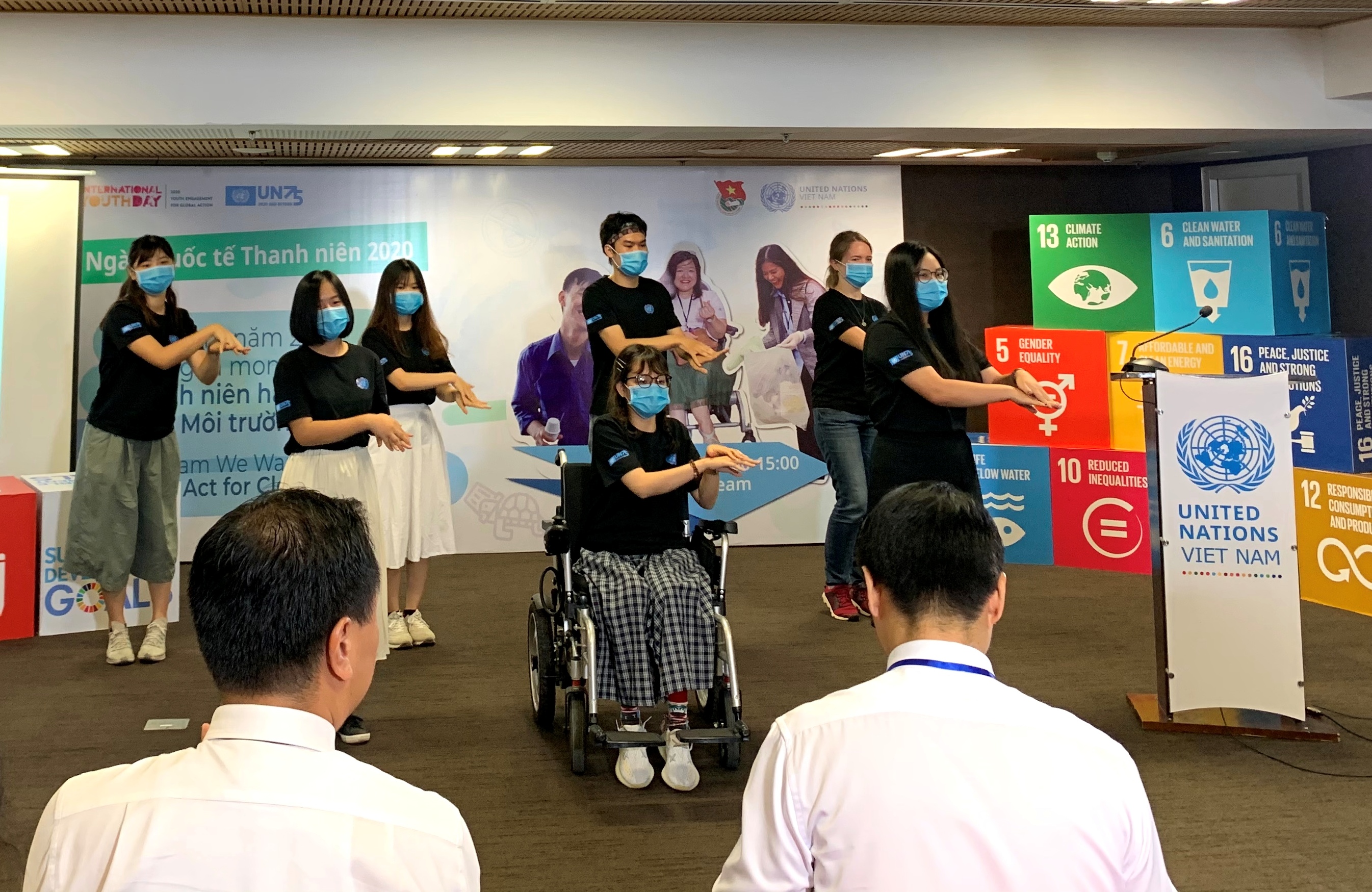 Các bạn trẻ hào hứng tham gia điệu nhảy rửa tay mùa COVID-19 hưởng ứng Ngày quốc tế thanh niên