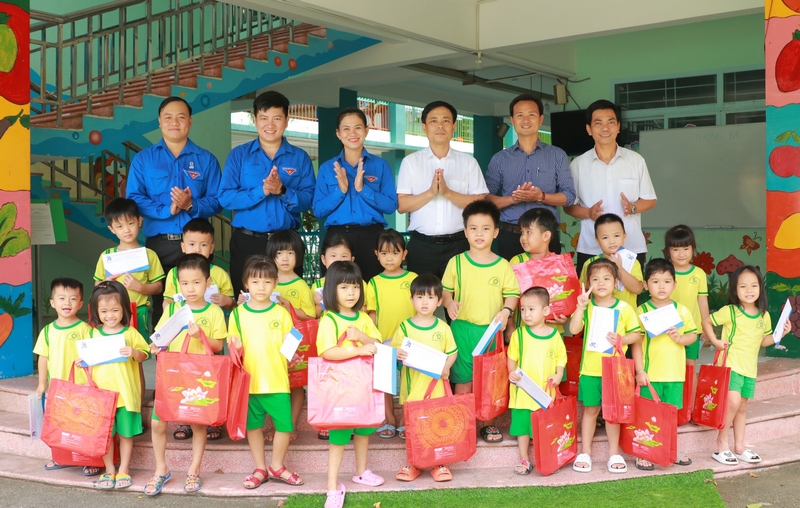 Thăm và tặng quà cho các em thiếu nhi tại trường Mầm non Ngôi sao nhỏ - một trong những mô hình chăm lo cho con em thanh niên công nhân trực thuộc Trung tâm Hỗ trợ thanh niên công nhân và Lao động trẻ tỉnh
