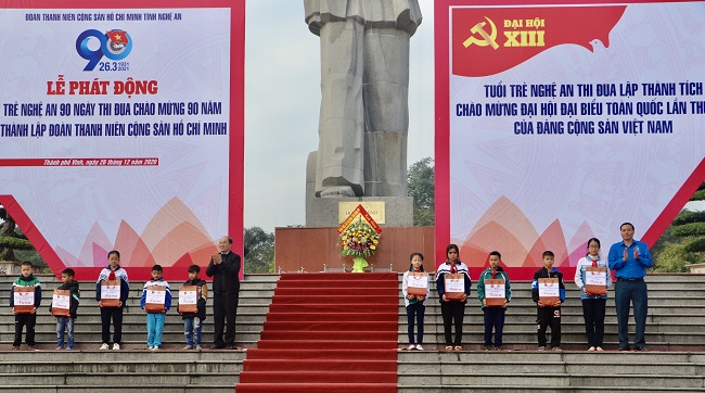 Để cổ vũ, khích lệ tuổi trẻ toàn tỉnh cùng đoàn kết, nỗ lực thi đua đồng chí Ngọc Kim Nam – UV BTV Tỉnh ủy, Trưởng ban Dân vận Tỉnh ủy đã lên trao cờ chính thức phát động tuổi trẻ Nghệ An 90 ngày thi đua chào mừng 90 năm ngày thành lập Đoàn TNCS Hồ Chí Minh.