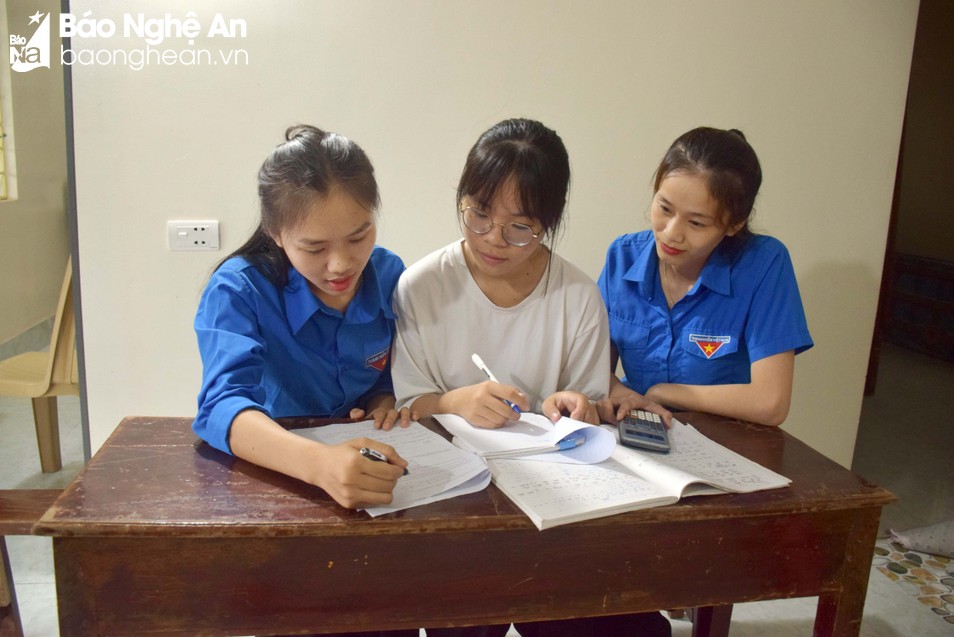 Hơn 60 học sinh có nguyện vọng được hỗ trợ ôn thi trên địa bàn huyện Thanh Chương đã được đội hình "Gia sư áo xanh" đồng hành trong quá trình ôn luyện. Ảnh: HĐTC