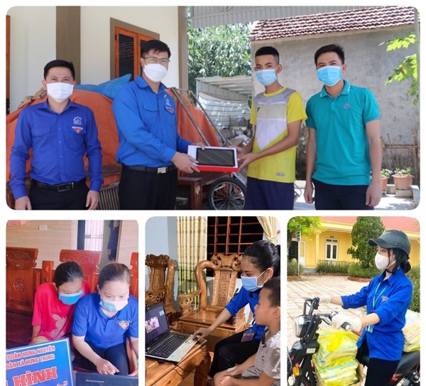 Phát huy sức trẻ, tại các cơ sở Đoàn đã có những cách làm sáng tạo trong việc xây dựng các mô hình nhằm hỗ trợ nhân dân như: mô hình “Điểm rửa tay sát khuẩn tự động dưới hình thức Chibi tuyên truyền” được thiết kế dạng chibi truyền tải những nội dung quan trọng trong công tác phòng chống dịch COVID-19; mô hình “Gia sư áo xanh” mở các lớp học chữ viết, lớp sinh hoạt, kỹ năng cho các em học sinh, hoặc đến từng hộ gia đình, từng nhà để ôn tập kiến thức hay tổ chức dạy và học bằng hình thức trực tuyến;...Hay như mô hình “Chuyến xe yêu thương”; mô hình “Nhật ký thời COVID"; đội thanh niên tình nguyện hỗ trợ người dân bị cách ly thu hoạch mùa màng, hỗ trợ công việc nhà; mô hình nông sản sạch hỗ trợ các khu vực phong toả, điểm cách ly tập trung; mô hình “Bán hoa gây quỹ” ủng hộ tuyến đầu phòng, chống dịch bệnh COVID-19;...đã tạo được sự lan tỏa, được cấp ủy chính quyền và nhân dân ghi nhận, đánh giá cao.