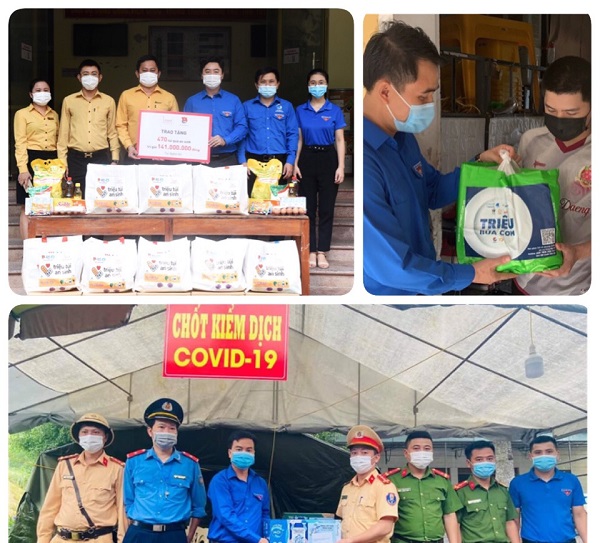 Đặc biệt, các cấp bộ Đoàn thành lập 485 đội thanh niên tình nguyện tổ chức tuyên truyền phòng chống dịch COVID-19 thông qua các trang mạng xã hội, loa phát thanh, gõ cửa từng hộ gia đình và vận động người dân khai báo y tế; trao tặng 750.000 khẩu trang y tế, 5.000 chai nước sát khuẩn và 7.000 kính chống giọt bắn; vận động, kêu gọi hỗ trợ thực phẩm cho 800.000 người dân, tham gia thiết lập khu cách ly và tổng dọn vệ sinh, phun thuốc khử khuẩn; phục vụ công tác hậu cần tại khu cách ly; tổ chức đội tình nguyện “Shipper áo xanh”, “Chuyến xe 0 đồng” mua thực phẩm cho người dân, người già neo đơn, hỗ trợ nước uống, cơm cho lực lượng tuyến đầu phòng, chống dịch COVID-19; giúp đỡ người dân đang bị cách ly thu hoạch mùa màng, thu hoạch nông sản; duy trì các đội hình tình nguyện hỗ trợ các điểm chốt kiểm soát phòng chống dịch.