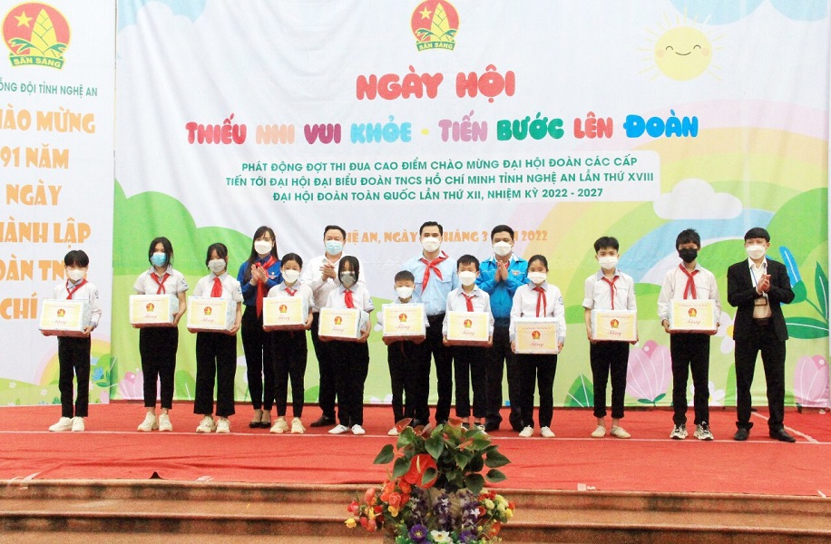 Dịp này, Hội đồng Đội tỉnh Nghệ An trao tặng Liên đội THCS Nam Sơn điểm “Không gian đọc sách, tương tác và sinh hoạt Đội”, trao 10 suất quà cho 10 bạn học sinh có hoàn cảnh đặc biệt khó khăn./.