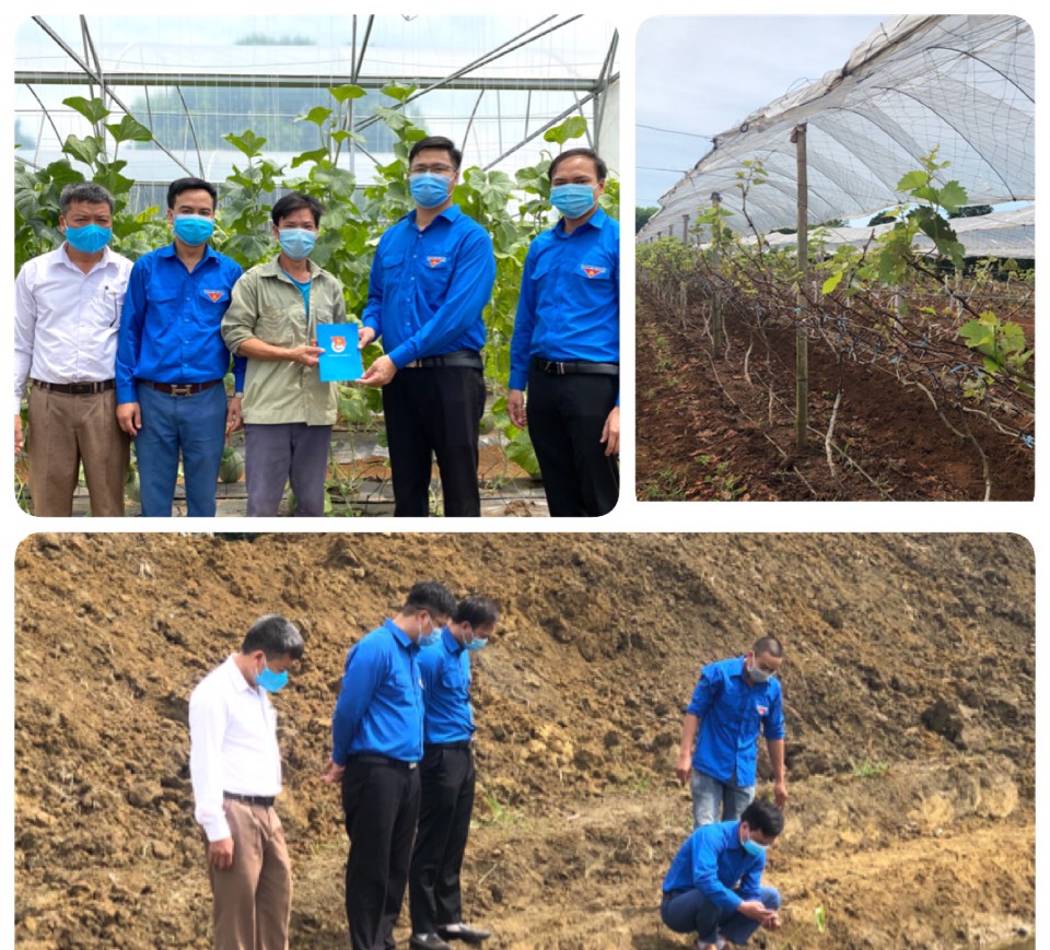 Đồng chí Phạm Văn Toàn - Phó Bí thư Tỉnh đoàn đến thăm một số mô hình thanh niên phát triển kinh tế trên địa bàn huyện Nghĩa Đàn: Mô hình trồng dưa lưới, mô hình trồng nho không hạt, mô hình nuôi ốc bươu