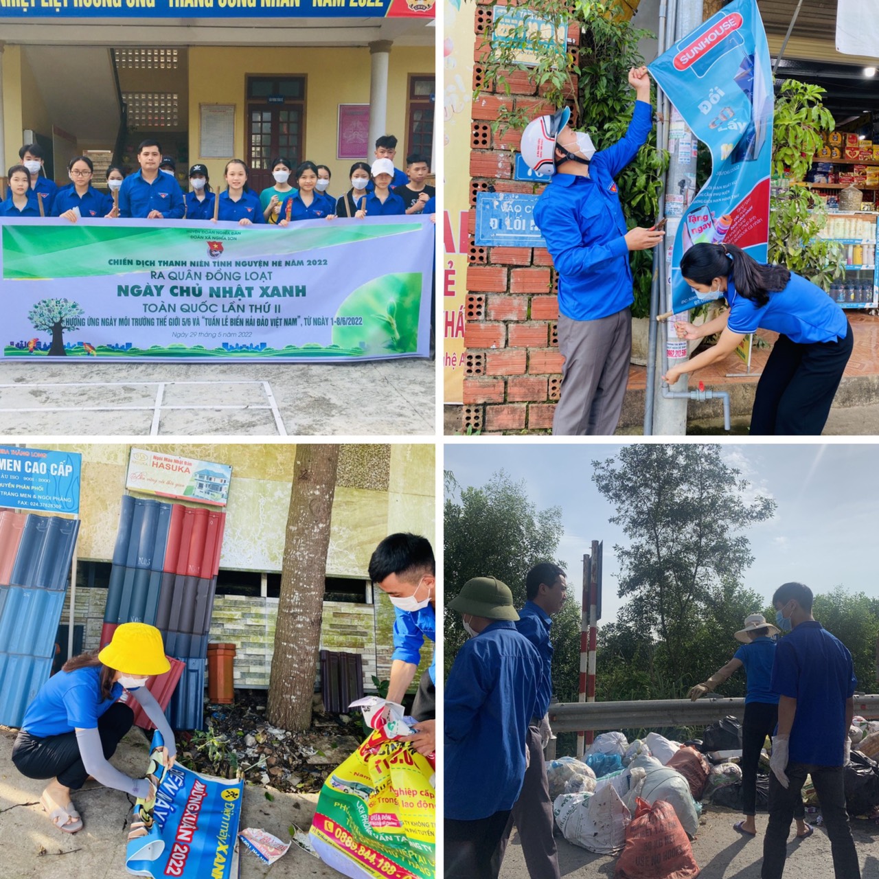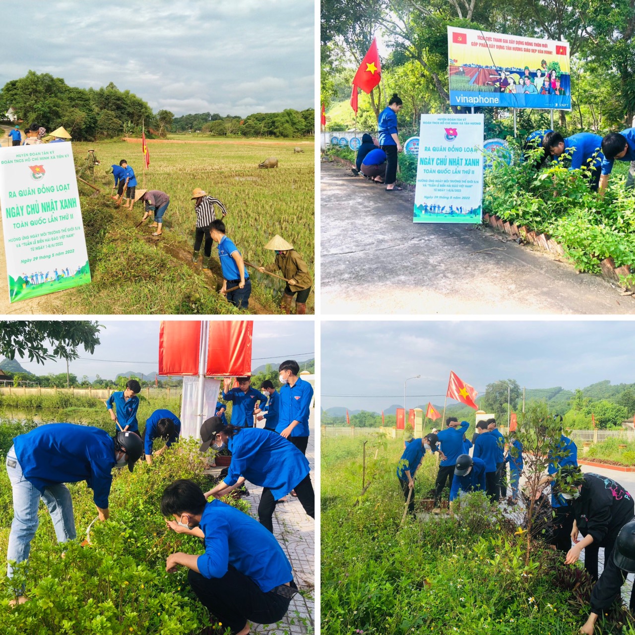 Từ sáng sớm, nhiều cơ sở Đoàn đã tập trung và thực hiện dọn dẹp, vệ sinh môi trường: quét dọn đường làng, ngõ xóm, phát quang cỏ cây, bụi rậm trên địa bàn dân cư; triển khai hoạt động trồng và chăm sóc, bảo vệ rừng; xây dựng “Đường cây thanh niên”, “Vườn hoa thanh niên”, “Hàng cây biên giới”, “Hàng rào xanh”; sơn tường khuôn viên cơ quan, đơn vị,…