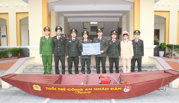 Tuổi trẻ Công an tỉnh trao tặng Công an huyện Hưng Nguyên, Công an huyện Thanh Chương 03 thuyền cứu hộ giúp dân phòng chống thiên tai, bão lũ với tổng trị giá 50 triệu đồng