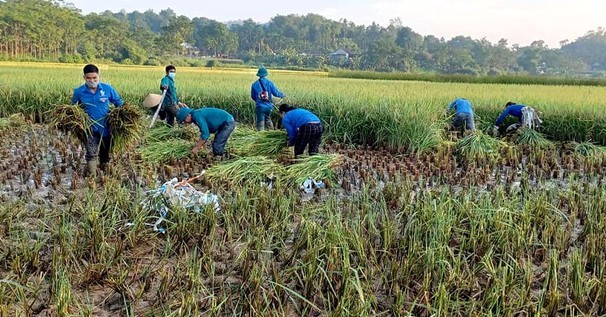 Anh Nguyễn Đình Bình - Bí thư Đoàn xã Thanh Liên chia sẻ: Ở địa phương, lúa của nhiều hộ dân bị đổ gãy, trong khi lực lượng thanh niên tình nguyện mỏng, nên Đoàn xã phải cân nhắc lựa chọn một số gia đình có hoàn cảnh đặc biệt để giúp.