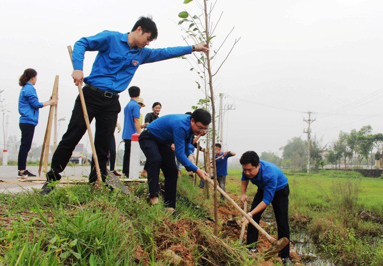 Tỉnh đoàn cùng cán bộ, đoàn viên tham gia trồng 200 cây xanh, xây dựng Đoạn đường thanh niên “xanh - sạch - đẹp - văn minh" cùng các đoàn viên thanh niên tại huyện Nghi Lộc sau lễ phát động.