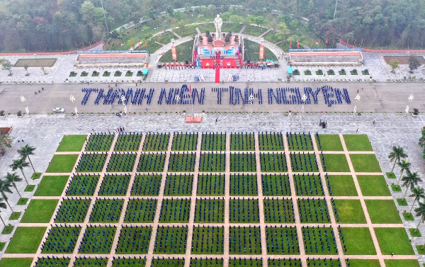 Đoàn viên thanh niên tỉnh Nghệ An tham gia xếp hình
