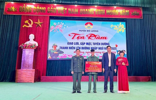 Nhân dịp này, lãnh đạo các cấp, BTV Đoàn các đơn vị đã trao tặng gần 1.000 suất quà động viên thanh niên lên đường nhập ngũ trị giá gần 500 triệu đồng, hỗ trợ xây dựng 01 nhà nhân ái trị giá 60.000.000đ cho gia đình tân binh Đặng Quang Quyết đơn vị xã Lạc Sơn, huyện Đô Lương. Bên cạnh đó, các cơ sở Đoàn cũng tổ chức Hội nghị giới thiệu, tư vấn việc làm cho gần 100 quân nhân xuất ngũ trở về địa phương.