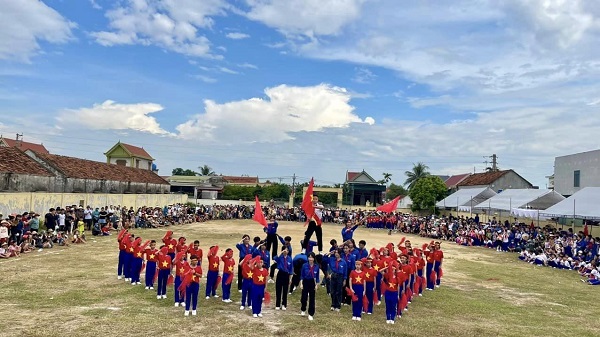 Hoạt động nghi thức đội, múa hát tập thể thu hút đông đảo các em tham gia. Hình ảnh tại xã Nghĩa Đồng, huyện Tân Kỳ.