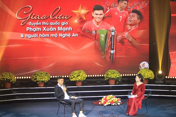 Cầu thủ Phạm Xuân Mạnh giao lưu cùng khán giả tại trường quay Đài PTTH Nghệ An.