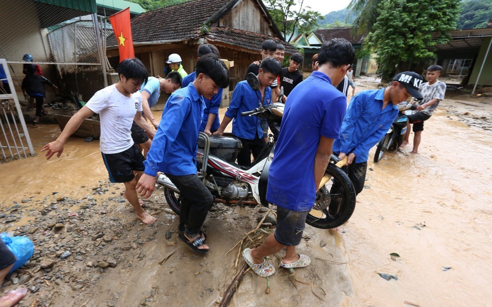 Ảnh 4: Các tài sản của người dân bị chôn vùi trong bùn đất nhanh chóng được lực lượng đoàn viên, thanh niên giúp người dân di dời, sửa chữa.