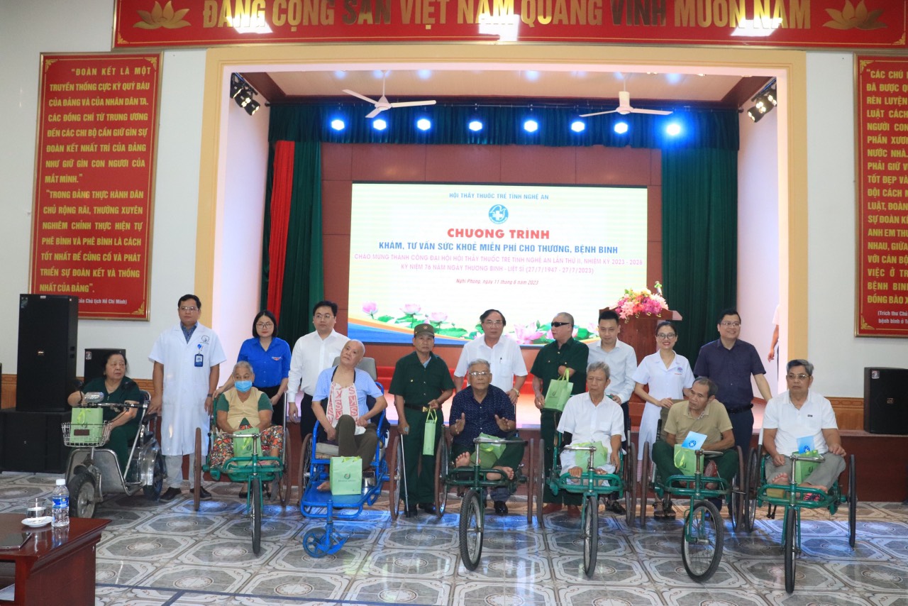 Tại Chương trình, Ban Tổ chức đã trao tặng 10 suất quà cho 10 bác thương, bệnh binh có hoàn cảnh đặc biệt khó khăn; trao tặng quà cho Trung tâm Điều dưỡng Thương binh Nghệ An; 76 Thương binh, bệnh binh, người có công tại Trung tâm đã được các y, bác sĩ khám lâm sàng, cận lâm sàng, kiểm tra tình trạng sức khỏe, tư vấn chăm sóc nâng cao thể trạng, phòng chống và đẩy lùi bệnh tật, hướng dẫn điều trị những trường hợp mắc bệnh đồng thời cấp phát thuốc miễn phí./.