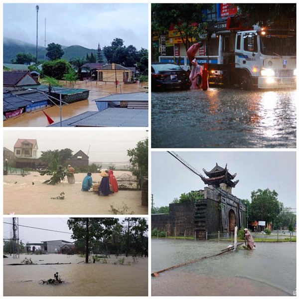 Mưa lớn do hoàn lưu bão số 9, người dân tại các thành phố Vinh và các huyện Thanh Chương, Đô Lương, Nghi Lộc, Hưng Nguyên... bị ngập sâu trong biển nước.
