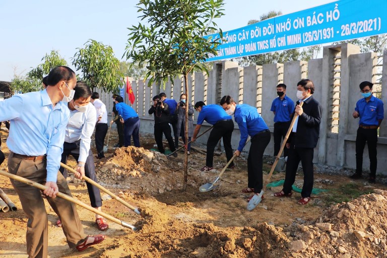 Trồng 100 cây xanh trong khuôn viên Trung tâm TTN tỉnh Nghệ An