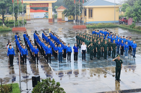 Dưới ngọn cờ thiêng liêng của Tổ quốc, cán bộ, đoàn viên thanh niên đều cảm thấy vinh dự, tự hào và xúc động khi đồng thanh hát vang Quốc ca Việt Nam.