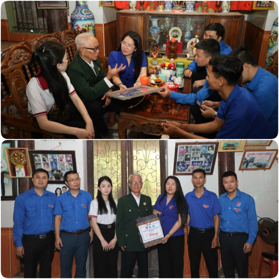 Đồng chí Nguyễn Thị Phương Thuý – PBTTT phụ trách Tỉnh đoàn, CT Hội LHTN tỉnh cùng đoàn đã đến thăm hỏi, tặng quà cho bác Vũ Đình Ngân - Cựu Chiến binh Chiến dịch Điện Biên Phủ