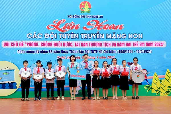 Dịp này, Hội đồng Đội tỉnh Nghệ An trao tặng cho Liên đội Trường Tiểu học Diễn Yên 1 bộ trống đội; 1.000 khăn quàng đỏ và 15 suất quà cho 15 học sinh có hoàn cảnh khó khăn vươn lên học tốt.