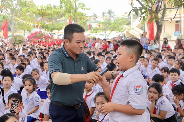 Các em học sinh hào hứng trả lời các câu hỏi liên quan đến chủ đề phòng, chống đuối nước, tai nạn thương tích và xâm hại trẻ em.