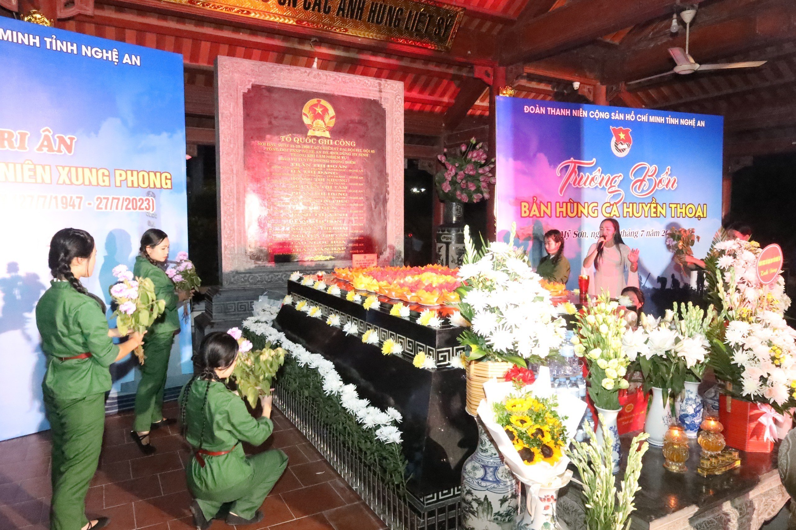 Đồng chí Lê Văn Lương - Bí thư Tỉnh đoàn cùng các đại biểu dâng hương, dâng hoa các Anh hùng, liệt sĩ Thanh niên xung phong tại Khu di tích lịch sử Quốc gia Truông Bồn ở xã Mỹ Sơn, huyện Đô Lương.