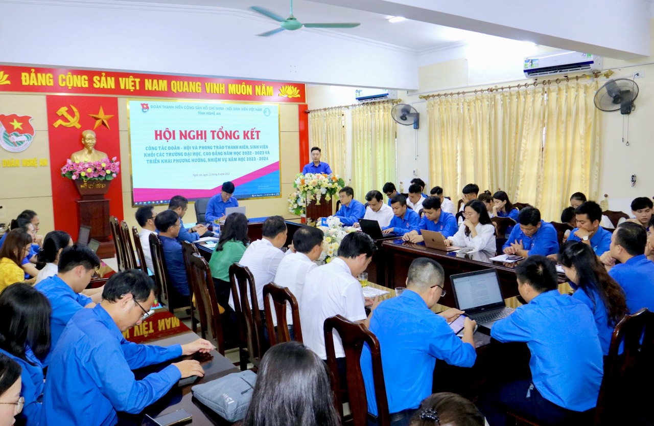Chiều 22/8, Tỉnh đoàn, Hội Sinh viên tỉnh tổ chức Hội nghị tổng kết công tác Đoàn - Hội khối các trường đại học, cao đẳng năm học 2022 - 2023 và triển khai phương hướng, nhiệm vụ năm học 2023 - 2024.
