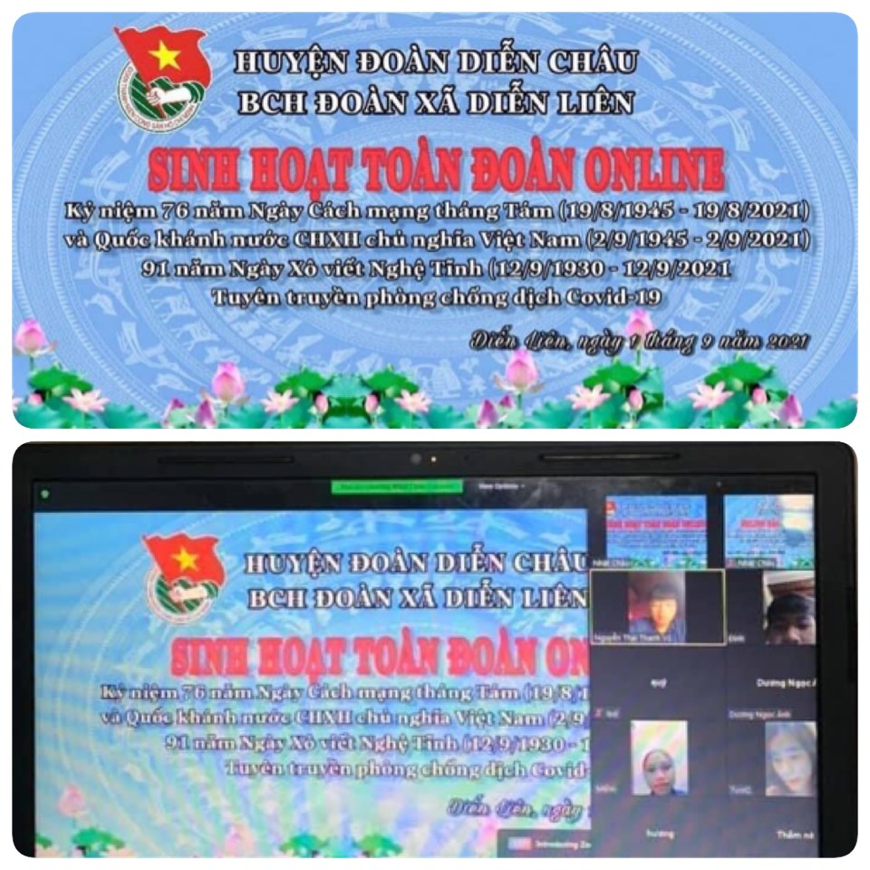 Tổ chức sinh hoạt trực tuyến tuyên truyền kỷ niệm 76 năm Ngày Cách mạng tháng Tám (19/8/1945 - 19/8/2021) và Quốc khánh nước CHXH chủ nghĩa Việt Nam (2/9/1945 - 2/9/2021); 91 năm Ngày Xô viết Nghệ Tĩnh (12/9/1930 - 12/9/2021). Ảnh: Huyện đoàn Diễn Châu