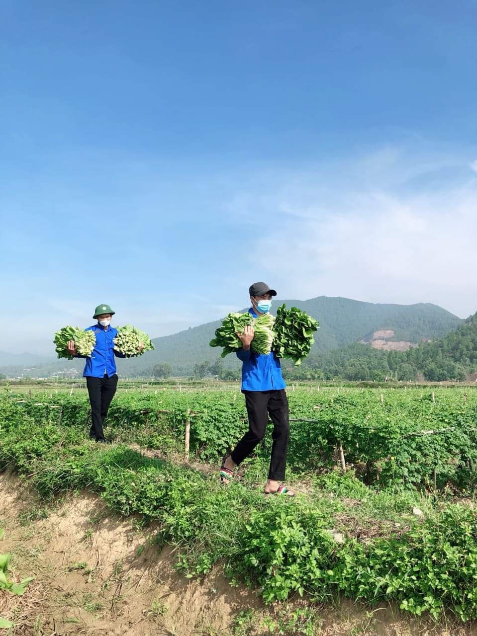 Đoàn viên thanh niên huyện Nghi Lộc hỗ trợ người dân thu hoạch và tiêu thụ nông sản. Ảnh: Huyện đoàn Nghi Lộc