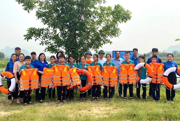 22 đội hình tình nguyện của tuổi trẻ Tân Kỳ không chỉ nâng cao kỹ năng phòng, chống đuối nước cho các em nhỏ mà còn đồng hành với các tổ chức, đơn vị trao tặng áo phao cho các em tại địa bàn khó khăn.