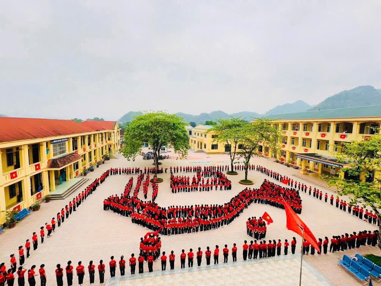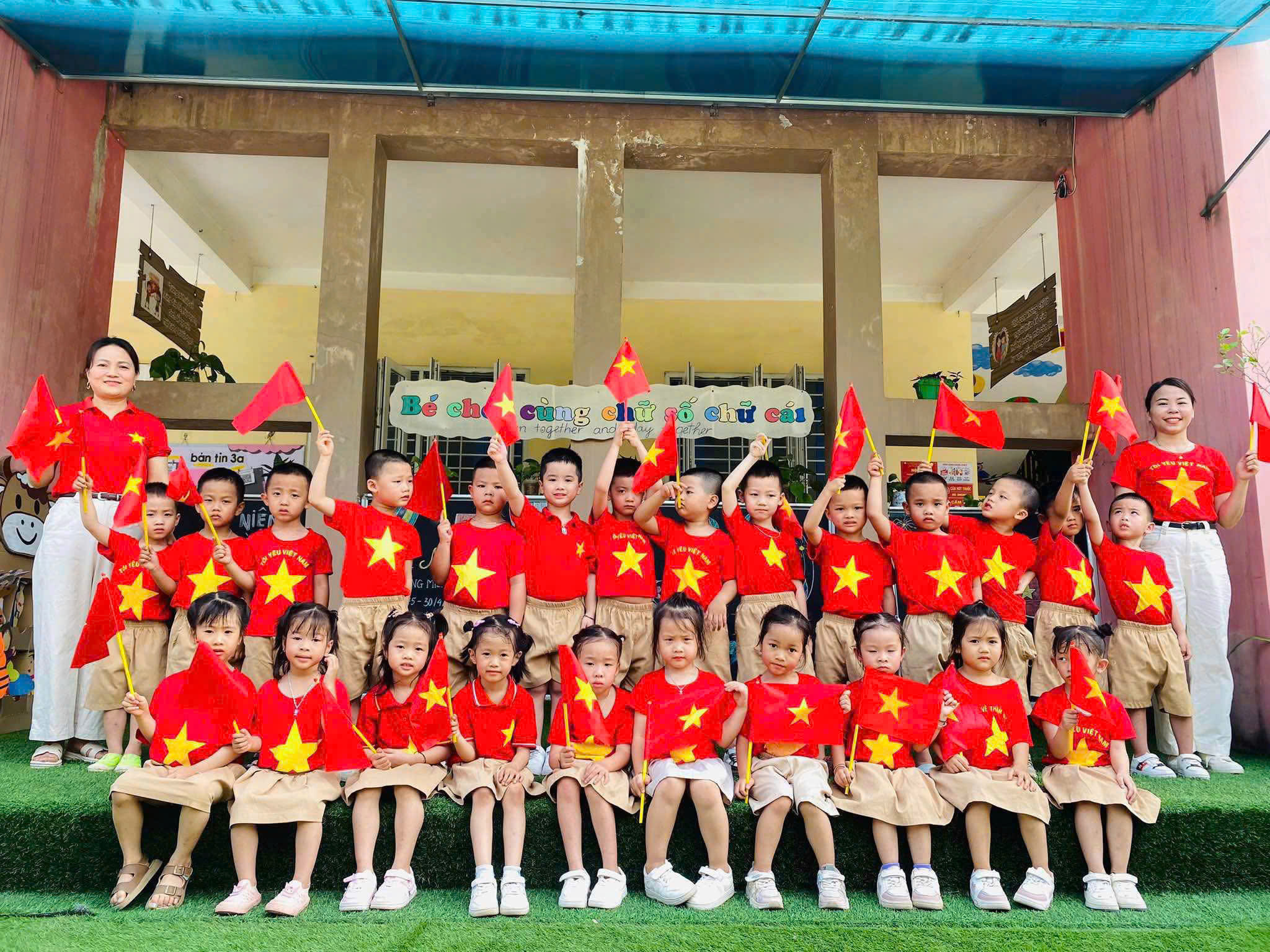 Việc trang trí cờ đỏ sao vàng không chỉ tạo nên không khí thiêng liêng mà còn giúp các em học sinh nhận thức sâu sắc hơn về ý nghĩa lịch sử của ngày 30/4.