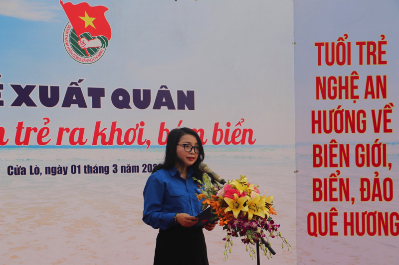 Phát biểu tại buổi lễ, đồng chí Nguyễn Thị Thơm - Quyền Bí thư Tỉnh đoàn cho biết Lễ xuất quân và tặng cờ cho ngư dân ra khơi bám biển, ra mắt câu lạc bộ ngư dân trẻ ra khơi là “tiếng trống” khởi đầu cho chuỗi các hoạt động Tháng Thanh niên năm nay. Hoạt động chính là tấm lòng, là niềm tin của tổ chức Đoàn thanh niên gửi gắm đếnnhững người ngư dân can trường, trong đó có lực lượng ngư dân trẻ. Thời gian tới, Đoàn thanh niên sẽ tiếp tục đồng hành cùng với bà con ngư dân, chung tay làm điểm tựa vững chắc cho ngư dân an tâm bám biển.