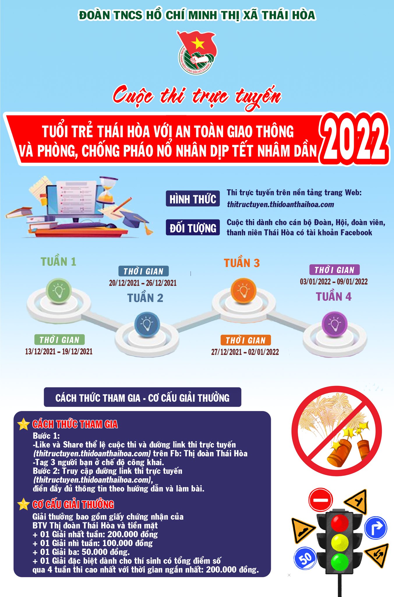 Bằng việc ứng dụng công nghệ thông tin, Thị đoàn Thái Hòa tổ chức Cuộc thi trực tuyến “Tuổi trẻ Thái Hòa với an toàn giao thông và phòng, chống pháo nổ” trên fanpage Thị Đoàn Thái Hòa, đã thu hút hơn 7.300 lượt đoàn viên, thanh niên tham gia.