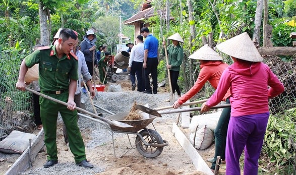 Đội tình nguyện cùng bà con dân bản tham gia xây dựng đường giao thông nông thôn.