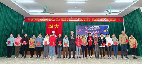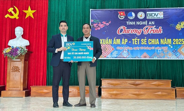 Dịp này, Đoàn Thanh niên Ngân hàng Thương mại cổ phần Đầu tư và Phát triển Việt Nam Chi nhánh Nghệ An (BIDV) trao Túi an sinh cho người dân có hoàn cảnh khó khăn và các đối tượng chính sách, gồm 40 phần Túi an sinh, mỗi túi có giá trị 500 nghìn đồng.