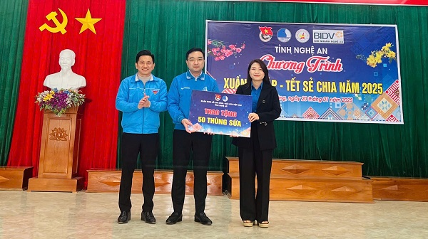 Cũng trong chương trình, Tỉnh đoàn - Hội LHTN Việt Nam tỉnh đã tặng 50 thùng sữa học đường cho Huyện đoàn Quỳ Hợp.