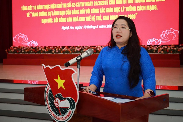 Đồng chí Nguyễn Thị Phương Thúy, Bí thư Tỉnh đoàn phát biểu tại Hội nghị