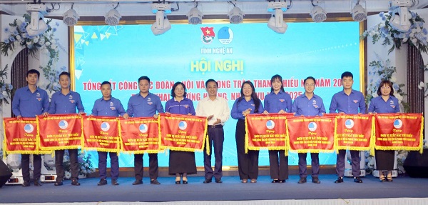 Ban Chấp hành Tỉnh đoàn đã trao cờ thi đua cho các tập thể đạt danh hiệu xuất sắc trong công tác Đoàn và phong trào TTN năm 2024 và 02 đơn vị sự nghiệp hoàn thành xuất sắc nhiệm vụ