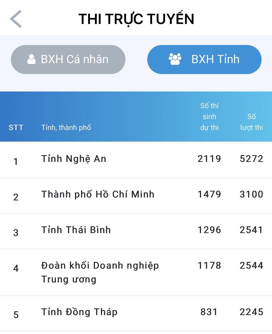 Nghệ An đứng thứ nhất bảng xếp hạng về tham gia kiểm tra Nghị quyết Đại hội Đoàn toàn quốc lần thứ XII sau 02 ngày triển khai trên ứng dụng Thanh niên Việt Nam.