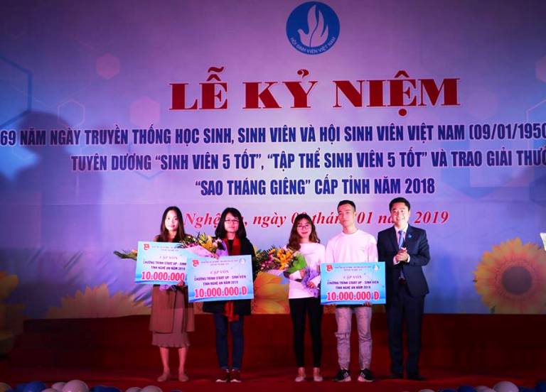 Cũng tại buổi lễ, Ban tổ chức đã trao vốn hỗ trợ 10 triệu đồng cho các ý tưởng tham gia cuộc thi “Start up - Sinh viên” (diễn ra chiều 7/1): "Siêu thị đồ cũ sinh viên" của tác giả Nguyễn Linh Nhi, sinh viên Trường Đại học Y khoa Vinh; "Bữa ăn sáng cho sinh viên và nhân viên y tế kết hợp với mô hình sinh viên quán thiện nguyện" của nhóm tác giả của sinh viên Trường Đại học Y khoa Vinh; "Kinh doanh Mỹ phẩm Kim thiên hoa - trị liệu từ tinh hoa đất Việt" - tác giả Thái Thị Linh sinh viên Trường Cao đẳng Du lịch Thương mại Nghệ An.