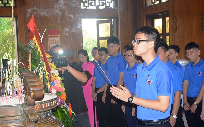 Quán quân cuộc thi "Đường lên đỉnh Olympia" năm thứ 19 Trần Thế Trung, học sinh Trường THPT chuyên Phan Bội Châu, với nhiều thành tích nổi bật khác như danh hiệu “Thanh thiếu nhi tiêu biểu tỉnh Nghệ An năm 2019”, Giải Khuyến khích Hội thi Olympic tiếng Anh học sinh, sinh viên toàn quốc, giải Nhất môn Vật lý Bảng A - kỳ thi Học sinh giỏi tỉnh Nghệ An vinh dự đại diện cho những gương mặt xuất sắc được tuyên dương dịp này dâng hương báo công với Bác Hồ.