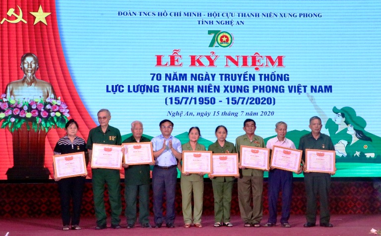 Nhân dịp kỷ niệm 70 năm ngày truyền thống lực lượng TNXP Việt Nam, UBND tỉnh đã trao tặng Cờ thi đua đơn vị xuất sắc 5 năm liền cho Hội Cựu TNXP tỉnh Nghệ An và Bằng khen cho các tập thể, cá nhân có nhiều đóng góp trong thời gian qua.