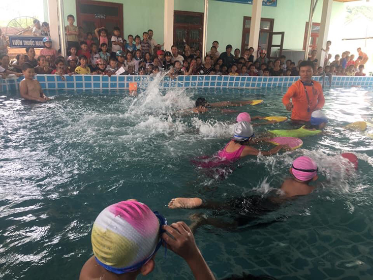 “Ban đầu, đối tượng hướng đến của chương trình là các em học sinh hộ nghèo, hộ cận nghèo. Tham gia các khóa học bơi ở đây, các em không chỉ được dạy bơi miễn phí mà còn được tài trợ mũ, kính, áo quần bơi. Sau này, đối tượng mở rộng hơn, nhiều phụ huynh ở các xã lân cận đã đưa con em đến nhờ các thầy dạy bơi. Nhờ đó, hàng trăm em học sinh trên địa bàn các xã miền núi, vùng cao khó khăn ở phía Tây của huyện Tuyên Hóa đã biết bơi và được rèn luyện các kỹ năng phòng, chống đuối nước”, thầy Lâm cho biết.