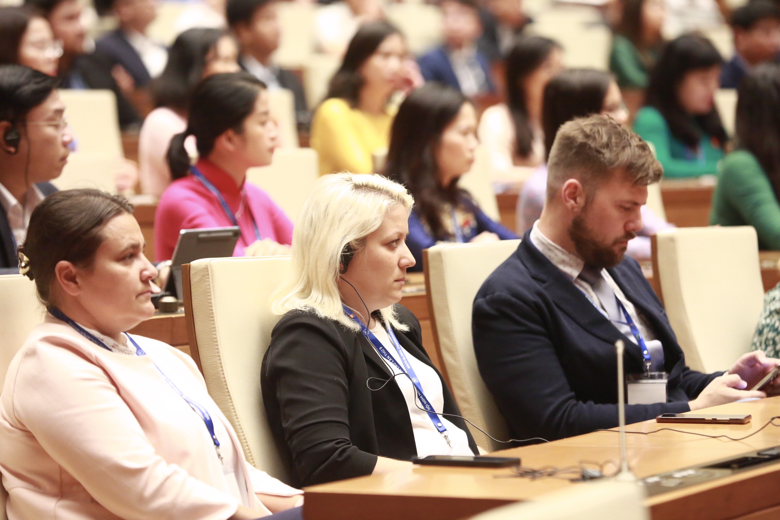 Đại biểu quốc tế có ông Duarte Pacheco - Chủ tịch Liên minh Nghị viện thế giới (IPU); ông Martin Chungong, Tổng thư ký Liên minh Nghị viện thế giới; Chủ tịch Diễn đàn Nghị sĩ trẻ IPU Dan Carden.