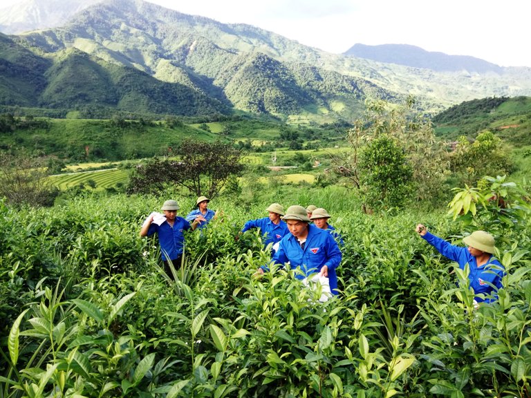 Bên cạnh đó, các Tổng đội TNXP đã hỗ trợ, giúp đỡ nhân dân, đội viên tổ chức sản xuất và bao tiêu sản phẩm, từng bước khai thác có hiệu quả tiềm năng đất đai ở những vùng khó khăn. Lực lượng TNXP Nghệ An đã tổ chức khai hoang được trên 3.500ha, đẩy mạnh việc trồng các loại cây có giá trị kinh tế, hình thành các vùng nguyên liệu cho công nghiệp chế biến của Tỉnh; khoanh nuôi, bảo vệ, chăm sóc hơn 40.000 ha rừng và trồng được hơn 3.000 ha rừng nguyên liệu; hình thành được vùng nguyên liệu 1.483 ha chè, trong đó có hơn 500 ha chè Tuyết Shan chất lượng cao, 363 ha mía, ...; có 02 đơn vị TNXP thực hiện chế biến chè, năm 2019 đã thu hoạch hơn 4.100 tấn chè búp tươi, đặc biệt là việc sản xuất và tiêu thụ tinh bột nghệ ngày càng được mở rộng đạt 8,5 tỷ đồng tinh bột….