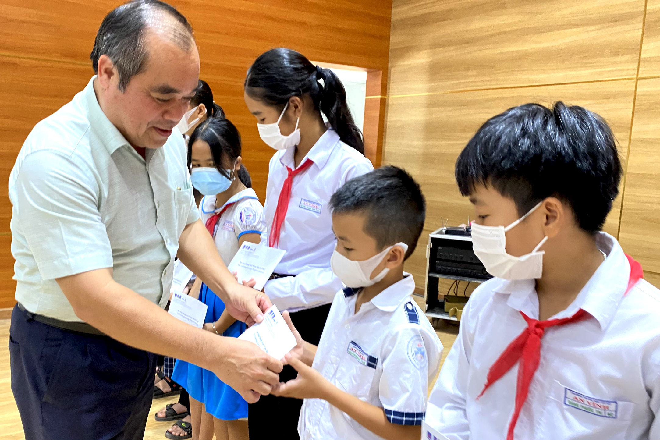 Ủy viên Ban Thường vụ Tỉnh ủy, Phó Chủ tịch Thường trực UBND tỉnh Trần Hoàng Tuấn trao học bổng cho học sinh