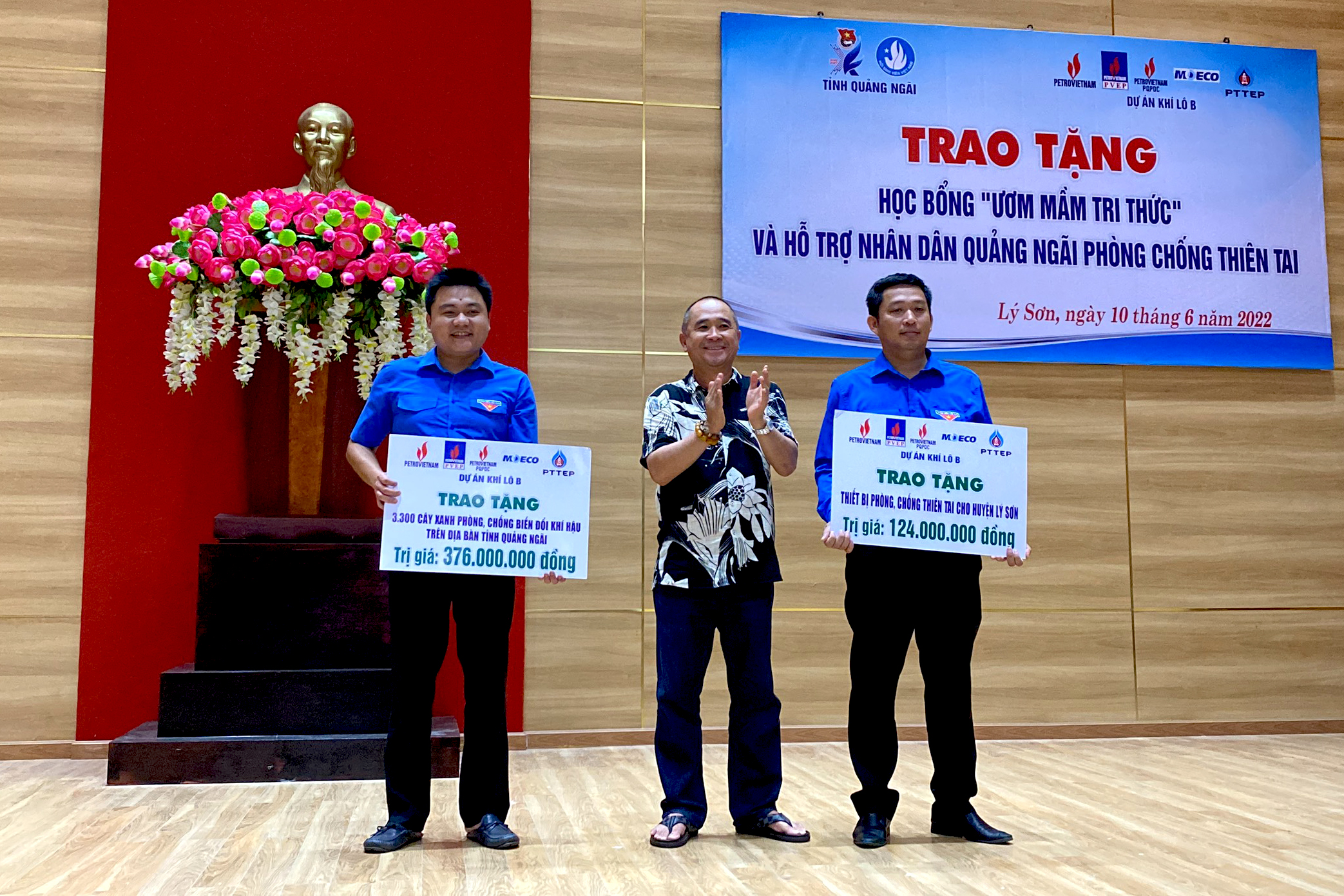 Nhằm đồng hành cùng ngư dân, giúp ngư dân an tâm vươn khơi bám biển và hạn chế mức rủi ro nhất do thiên tai gây nên, tại chương trình, Công ty Điều hành Dầu khí Phú Quốc còn trao tặng các thiết bị phòng chống thiên tai trị giá 124 triệu đồng cho huyện đảo Lý Sơn; đồng thời trao tặng tỉnh Quảng Ngãi 3.300 cây xanh góp phần phòng, chống biến đổi khí hậu trị giá 376 triệu đồng.