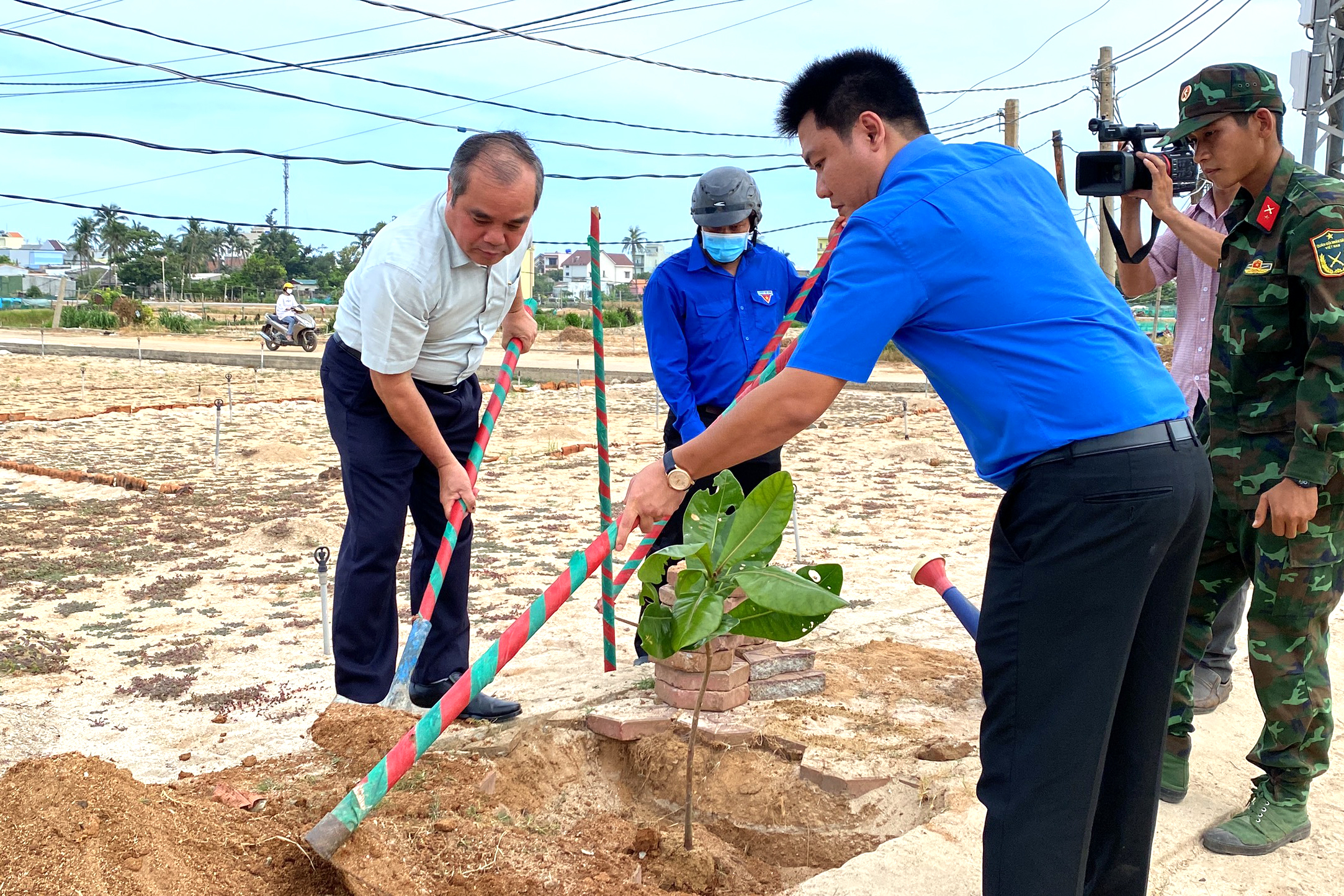 Ủy viên Ban Thường vụ Tỉnh ủy, Phó Chủ tịch Thường trực UBND tỉnh Trần Hoàng Tuấn tham gia trồng cây phòng, chống biến đổi khí hậu tại Lý Sơn