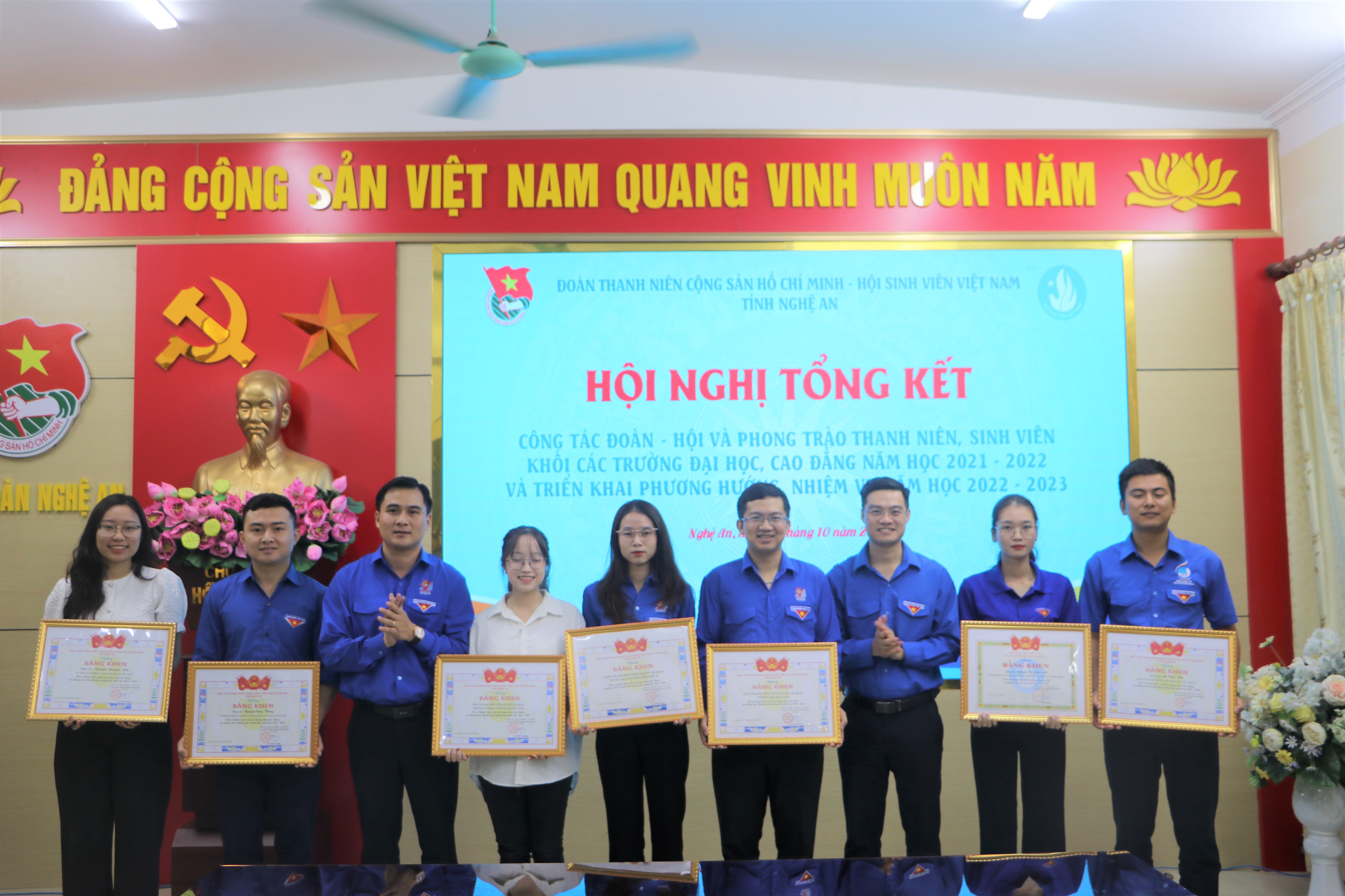 Cũng tại hội nghị, Tỉnh đoàn, Hội Sinh viên tỉnh đã khen thưởng các tập thể, cá nhân có thành tích xuất sắc trong công tác Đoàn và phong trào thanh niên trường học, công tác Hội và phong trào sinh viên năm học 2021 – 2022.