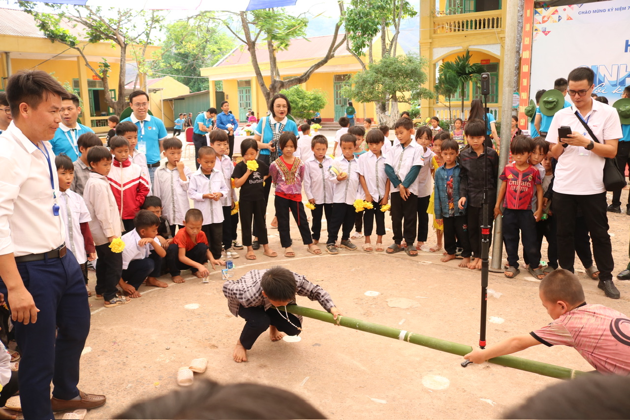 Các đại biểu Hành trình “Sinh viên với khát vọng non sông” đã làm nên một “bữa tiệc trò chơi” sôi động cho học sinh trường DTBT Tiểu học Nậm Vì, với 11 khu vui chơi ngay tại sân trường, gồm: tô tượng; vẽ tranh, tô màu; nặn đất sét; ném vòng vào đích; ném Pao dân tộc Mông; kéo co; đẩy gậy; nhảy bao bố; bịt mắt đập trống; mèo đuổi chuột; chuyền bóng bay về đích.