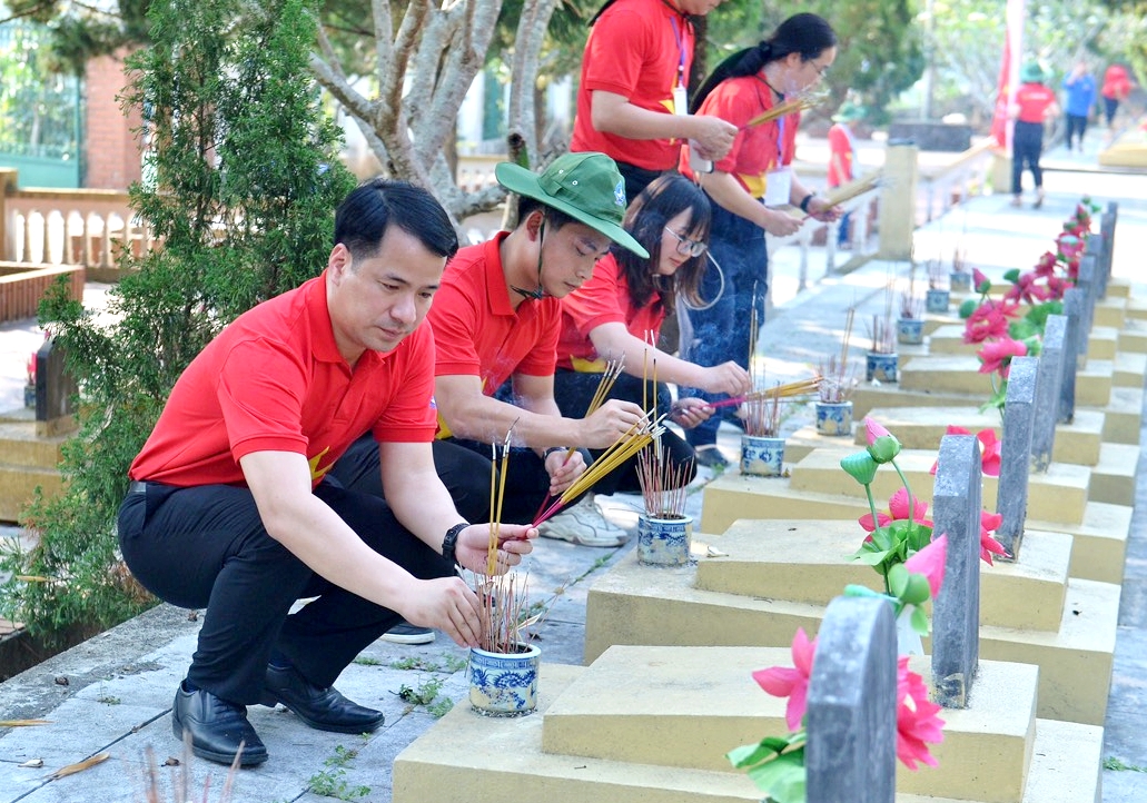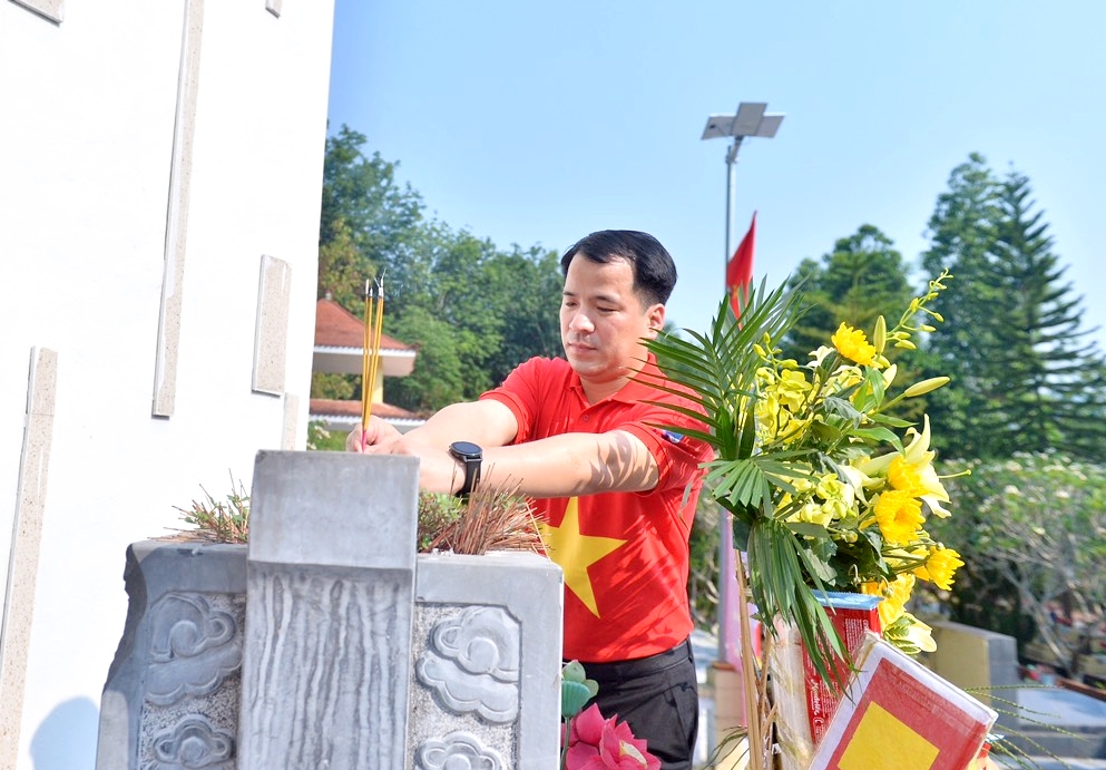 Bí thư T.Ư Đoàn Ngô Văn Cương cùng đoàn hành trình dâng hương tưởng niệm các AHLS tại Nghĩa trang Liệt sĩ Chăn Nưa (huyện Xìn Hồ, tỉnh Lai Châu).